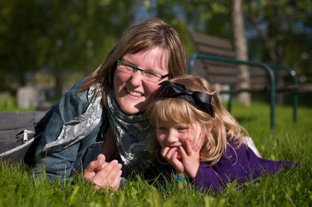 Bildene av meg og Emilie er tatt like etter vi tente lys på grava til mamma, som fikk skinne til kvelden. Mamma hadde absolutt likt at vi tulla litt og rulla i gresset ;)