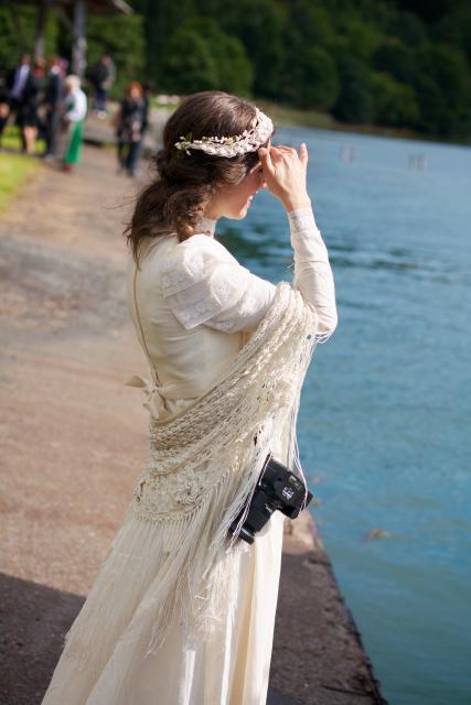 Den vakre bruden venter her på sin brudeferd over til kirka.