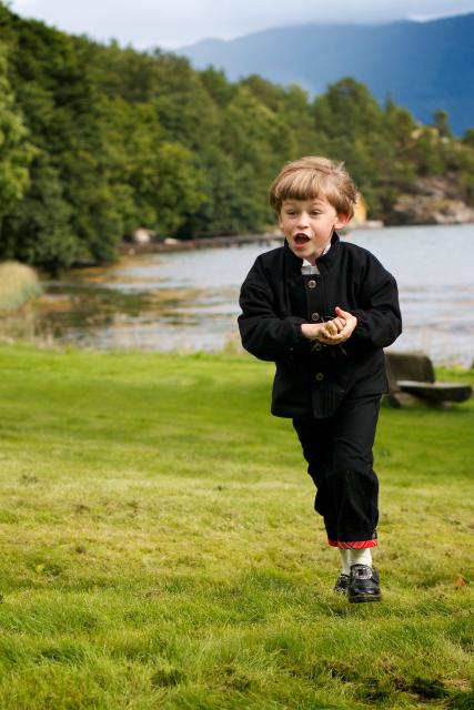 På fredag reiste vi til Bodø for å delta i Cecilie og Tronds bryllup. Vi tok fly oppover, og for å spare en tusenlapp på flybillettene måtte vi ta 7-flyet. Emilie måtte dermed vekkes klokka 5 for å spise frokost før vi dro, noe hun ikke helt skjønte med det samme - det har da aldri hendt før at mamma og pappa vekker henne, det pleier da alltid å være motsatt! Men mamma og pappa hadde vært våkne siden halv fire, én time før vekkerklokken slo til…